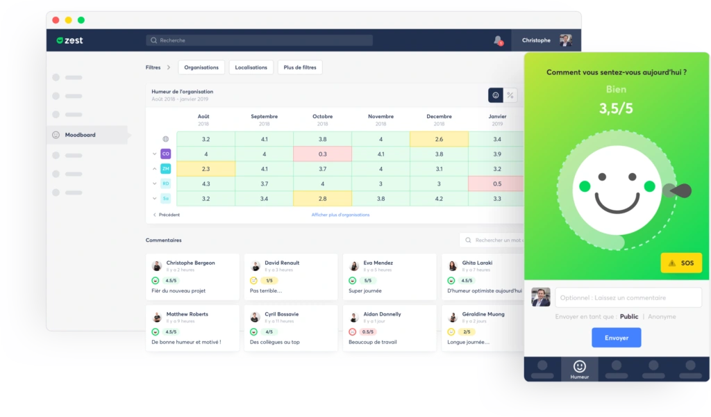 Employee engagement is not static; it relies on modifiable factors throughout the year. With ZestMeUp, you centralize the management of these factors in real-time and ensure that you remain constantly at the heart of your teams’ lives.