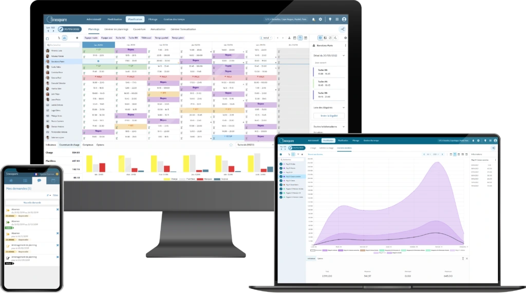 With Timesquare, structure your company’s organization around daily schedules optimized to promote an optimal work-life balance and reconcile employee engagement with customer satisfaction. Comply with regulations without compromising the efficiency of your teams.