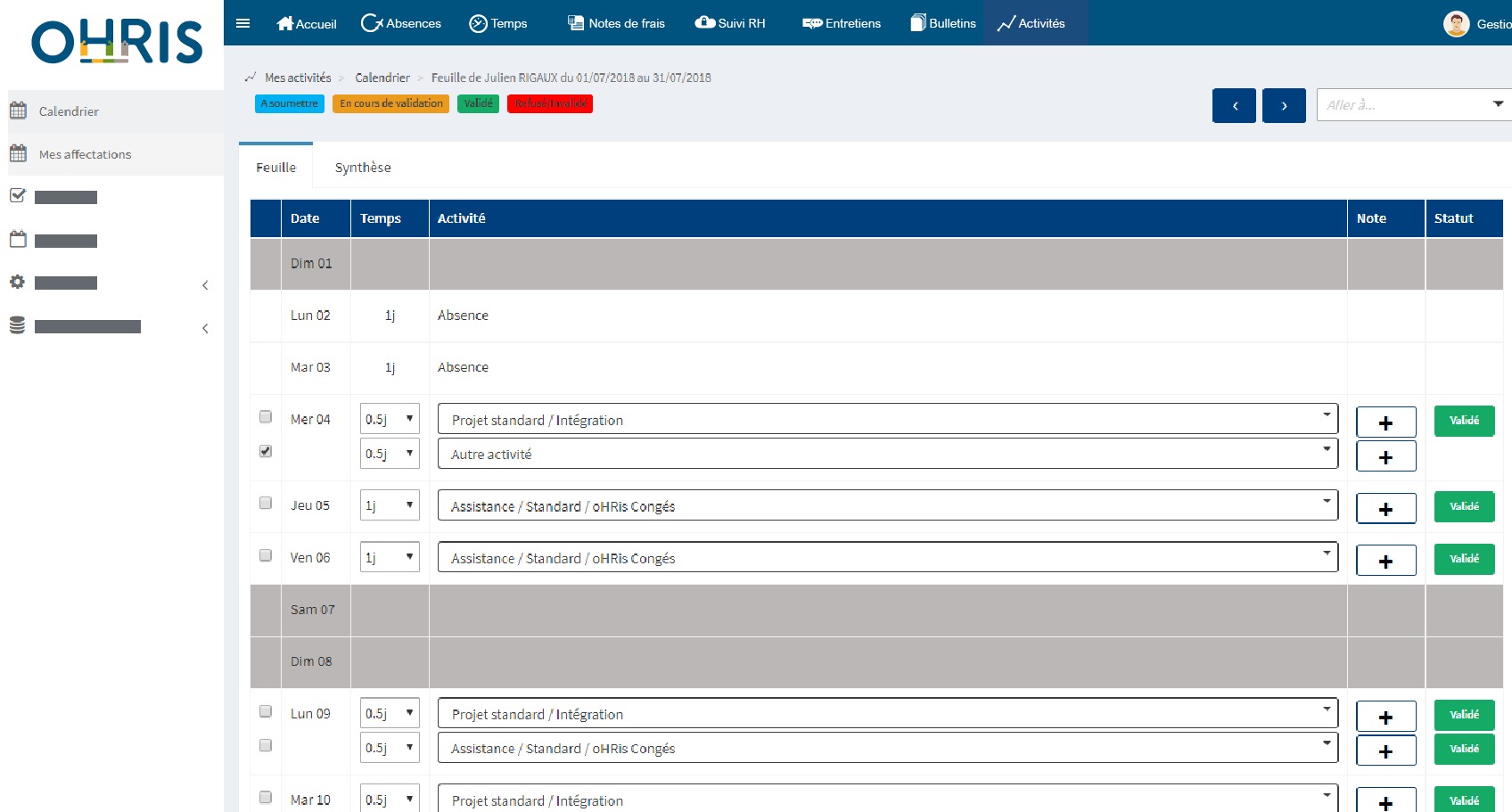 oHRis Activity Tracking is a solution developed by the oHRis editor dedicated to managing and tracking activities and projects within your company. This software allows you, through an intuitive interface, to accurately track the time spent by each employee on a project and to legally justify the time allocated to certain tasks.