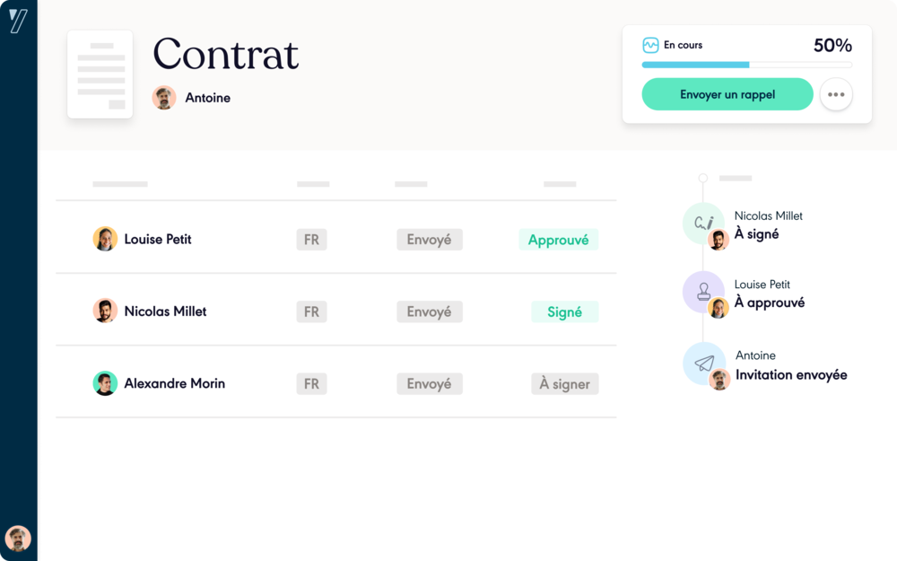 Yousign is the intuitive, accessible and secure French solution that allows SMEs to have all their documents signed in a few seconds in a 100% digitalized manner!