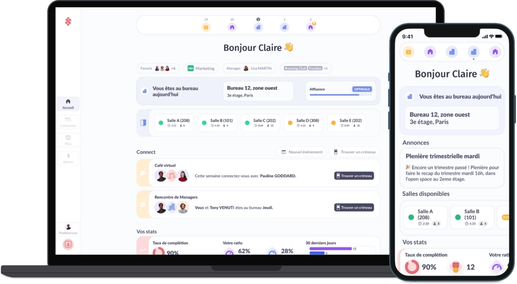 Who is where? Who comes when? Where do we settle? While the generalization of teleworking is often associated with flex-office, the organization of work is changing and companies must adapt to this new mode of operation. Semana is a space and schedule management solution that facilitates hybrid working policies while simplifying collaboration and visibility. Semana integrates with key tools: HRIS, Google, Microsoft, Slack, Teams…