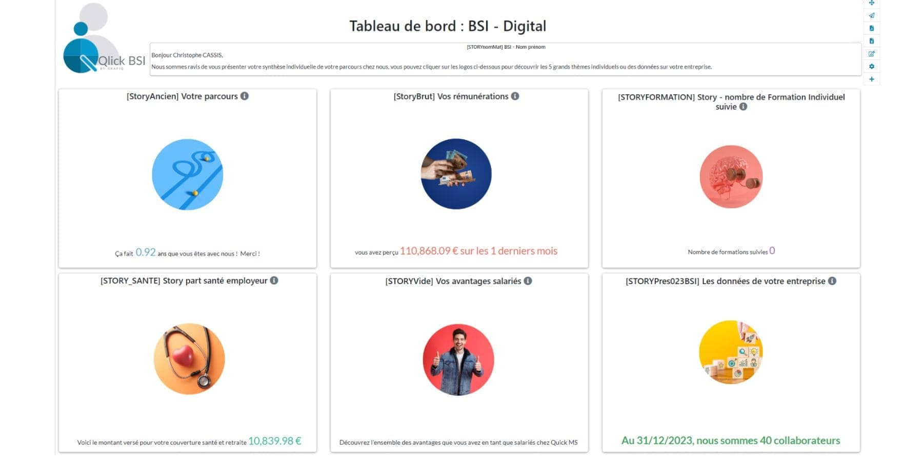 Qlick BSI de GrafiQ valorise votre politique salariale via des Bilans Sociaux Individuels digitaux. Offrez à vos collaborateurs un accès simple et dynamique à leurs données. Notre accompagnement garantit une mise en place rapide et personnalisée, assurant fiabilité et mise à jour automatique des données basées sur votre SIRH.