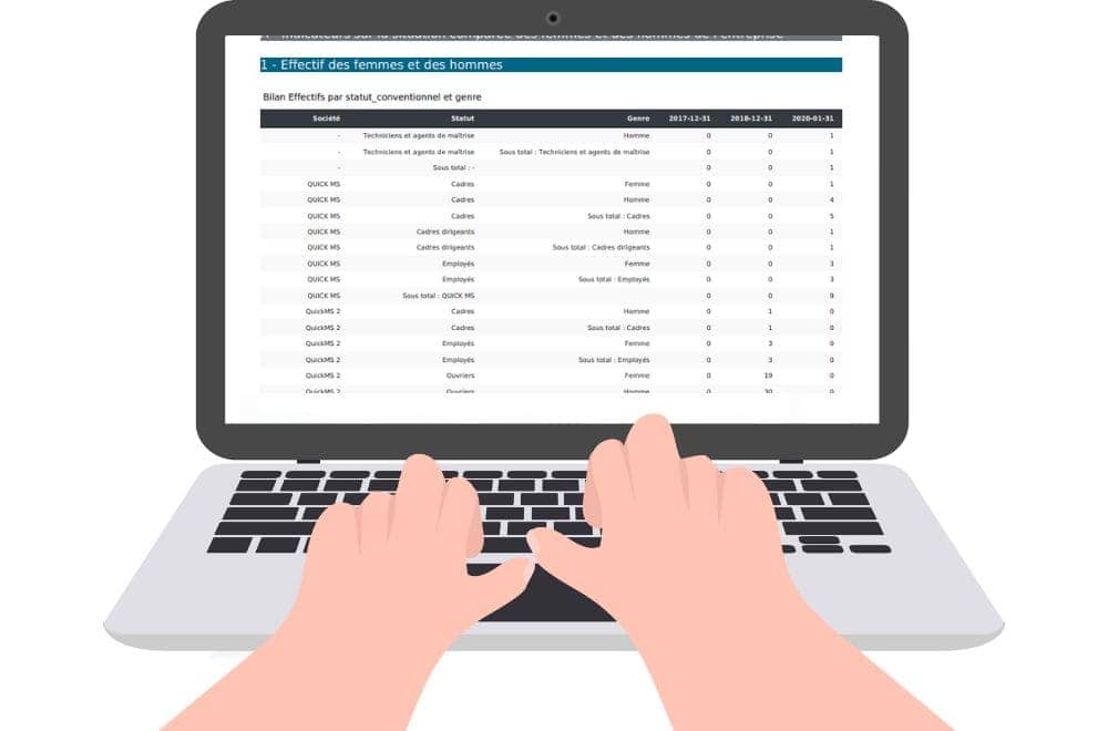 Bilan social GrafiQ simplifie votre conformité aux obligations légales liées à l’Index égalité H/F et au Bilan Social. Vous automatisez le calcul annuel de l’Index EGAPRO avec une garantie de précision. Le Bilan Social est généré facilement, calculant automatiquement les indicateurs sociaux. Vous pouvez personnaliser des rapports récurrents sans refaire la trame à chaque fois.