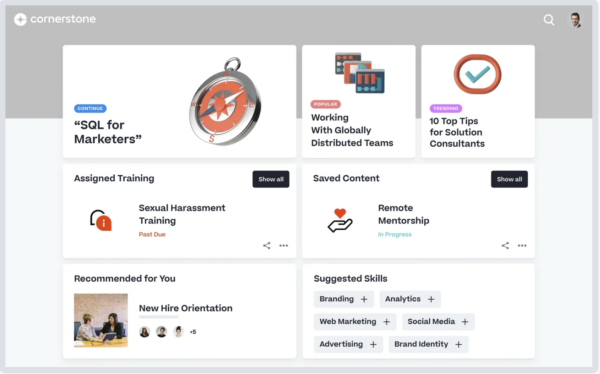 En consultant leur profil, vos collaborateurs pourront avoir une évaluation plus précise de leur niveau dans certaines compétences et utiliser l’IA intégrée dans l’outil Cornerstone Skills Graph pour accéder à des opportunités sur-mesure. La solution guide l’utilisateur vers des axes pertinents en lui donnant toutes les informations dont il a besoin, mais lui laisse l’autonomie de s’engager dans la voie qu’il trouve la plus importante. En suivant le parcours d’apprentissage adéquat, en plus de développer son employabilité, l’employé se donne les clés pour réussir dans sa pratique.