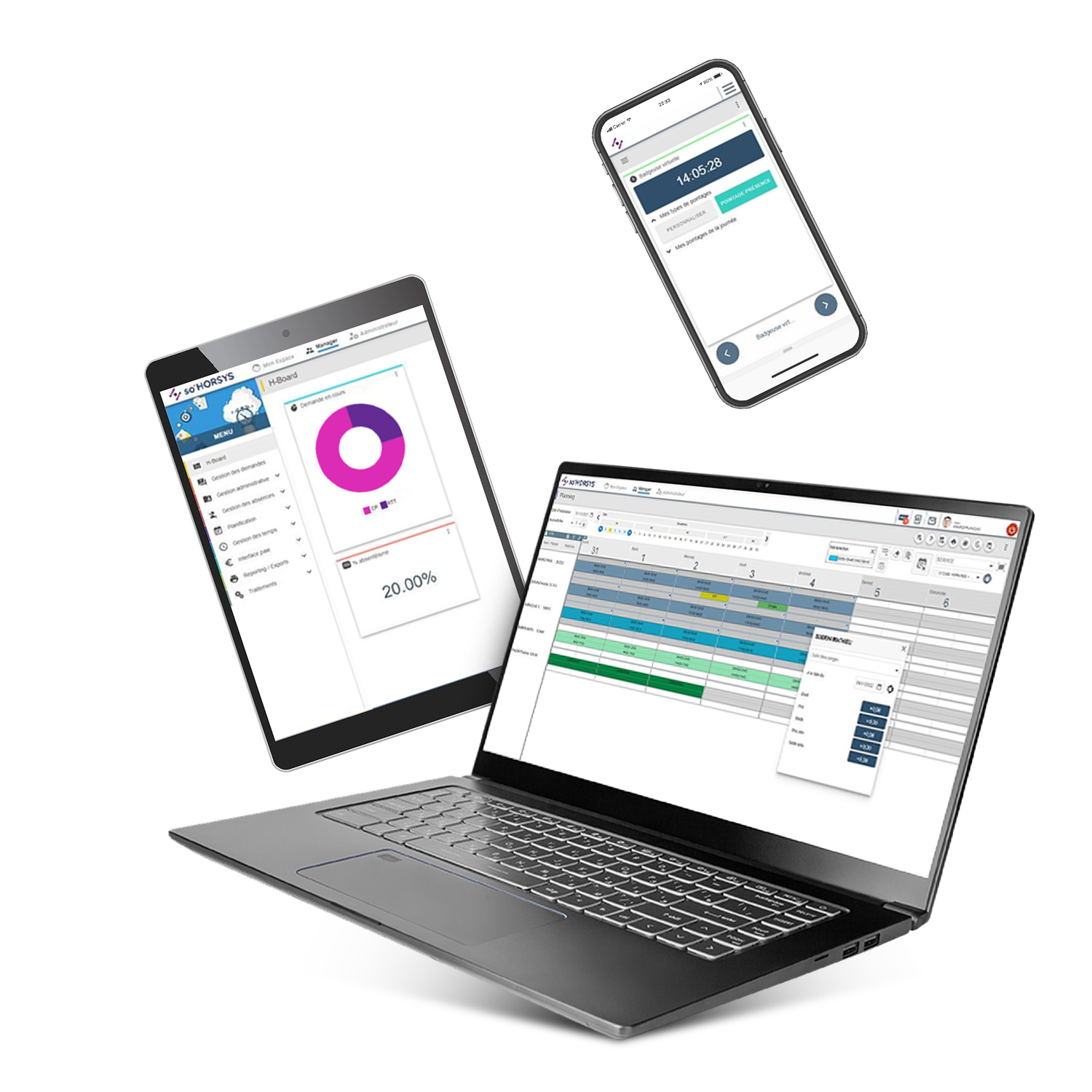 Disponible sur PC et mobile, So’Horsys est utilisée par les managers et les salariés pour gagner en productivité. Elle vous apporte le meilleur équilibre entre fonctionnalités et facilité d’utilisation et son ergonomie simple et attrayante en fait l’outil central de votre gestion des Ressources Humaines.