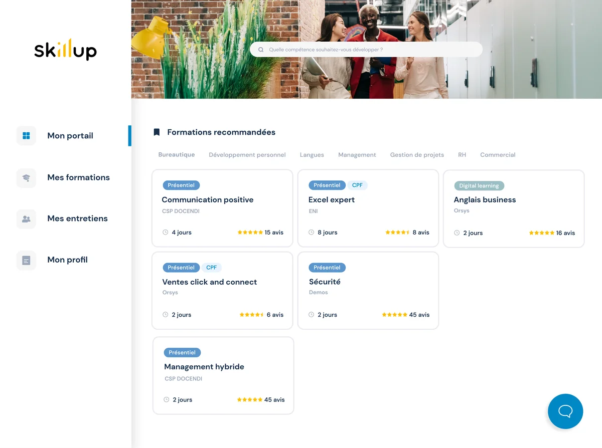 Aujourd’hui composée d’une équipe de plus de 30 personnes, Skillup met son expertise métier au service de plus de 80 000 utilisateurs et leur permet de développer le plus intuitivement possible leurs compétences.