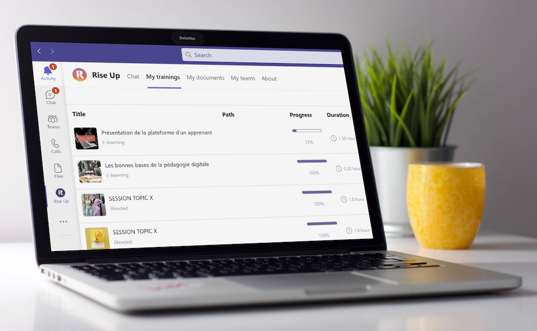 Tout dans Rise Up diminue l’effort pour accéder à une formation optimale et des contenus de qualité. La solution est connectable à Microsoft Teams ce qui permet de se former continuellement et d’accéder instantanément à son espace virtuel de formations. L’assistant LIA accompagne aussi l’utilisateur dans son parcours d’apprentissage au sein de Microsoft Teams. Rise Up propose aussi sa solution sur smartphone et encourage les collaborateurs à utiliser cette nouvelle manière d’apprendre et de se former en tout lieu et à chaque instant. L’application mobile de Rise Up propose des sessions de micro-learning sur 5 à 15 minutes même hors connexion, ce qui augmente le nombre de plages d’apprentissage d’un collaborateur et le fait progresser plus vite au quotidien. Vous pouvez ensuite mesurer l’impact en un coup d’œil en surveillant l’engagement des apprenants au travers des KPIs disponibles en temps réel sur Rise Up.