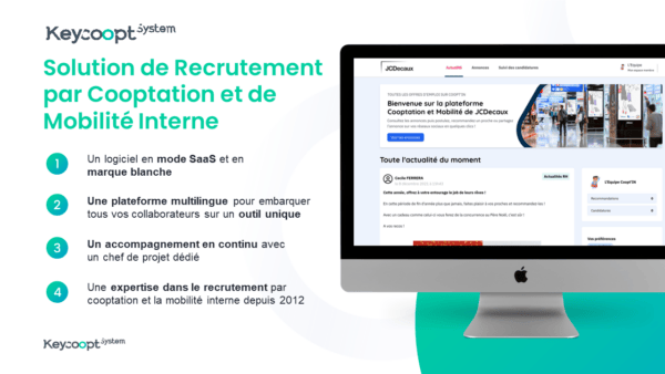 Keycoopt, un précurseur et leader dans le domaine du recrutement basé sur la recommandation et la mobilité interne, met à disposition depuis 2012 des plateformes digitales personnalisées et collaboratives. L’objectif principal est de simplifier le recrutement par la cooptation et de promouvoir la mobilité interne, favorisant ainsi l’engagement des collaborateurs au sein de la stratégie RH de l’entreprise. De plus, Keycoopt assume la gestion complète de l’animation et de la communication des programmes de cooptation et de mobilité interne pour ses clients.