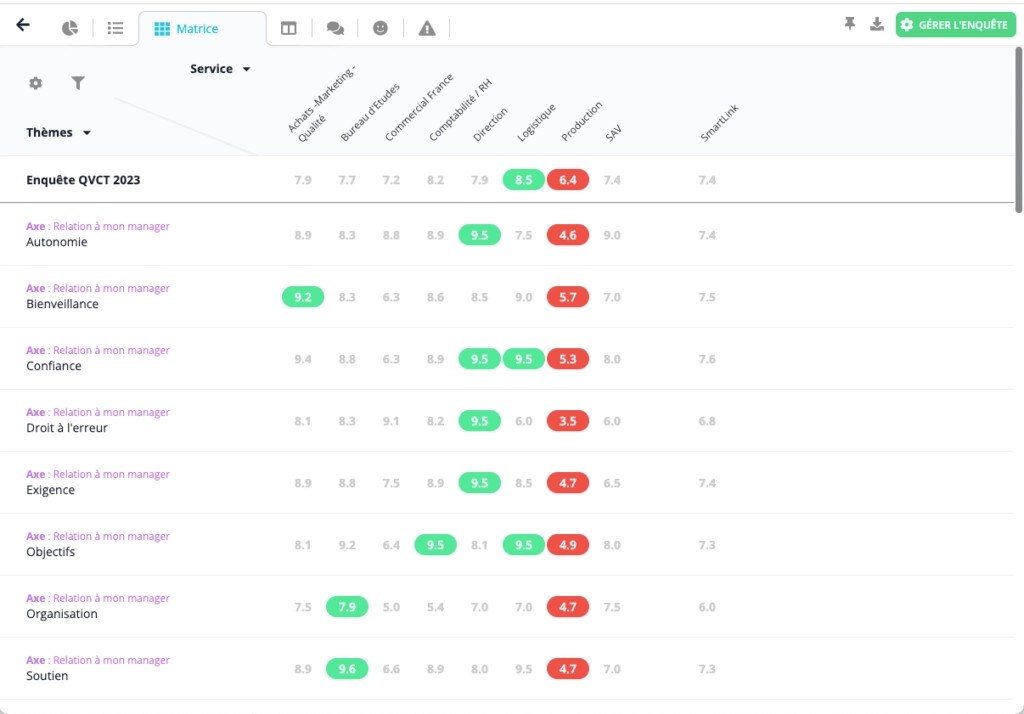 Echelle, QCM, commentaire libre…Obtenez ainsi des résultats détaillés qui vont permettre de mettre en place des plans d’actions concrets.