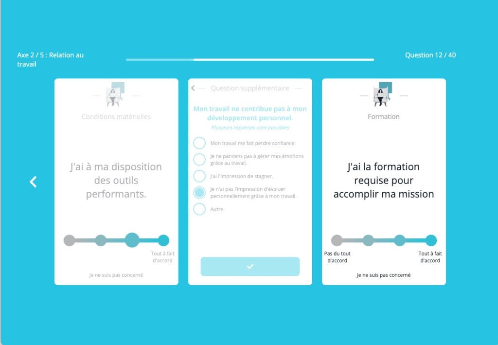 IDTree est une solution appréciée autant par les collaborateurs que par la direction avec une interface utilisateur ludique. L’engagement des participants est garanti par les relances automatiques et le respect de l’anonymat.
